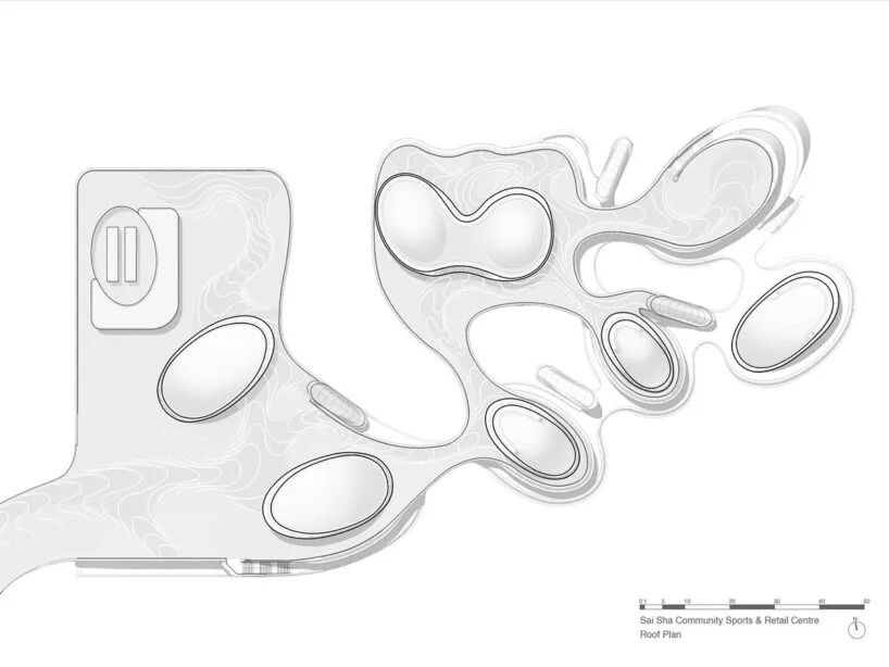 The project is located between Ma On Shan Country Park and Erzhang Bay in Hong Kong. The massive volume of 1.3 million square feet does not abruptly intervene in nature, but simulates the spatial texture of traditional mountain villages in Hong Kong through "interconnected volume combinations", creating a continuous visual and spatial dialogue between the architectural form and the surrounding terrain.