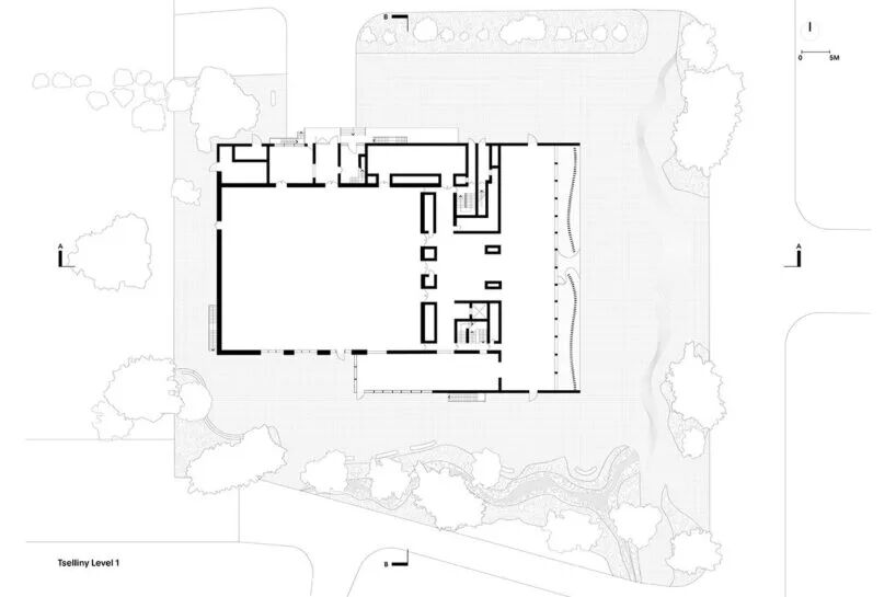 Since 2017, the Tselinny Center team has embarked on a carefully planned reconstruction project. Asif Khan worked closely with local architect Zaure Aitayeva to reinforce the building structure, enhance its seismic performance, and restore the clarity of the original spatial layout of the building. The scratch paintings of Soviet artist Evgeny Sidorkin were rediscovered in this reconstruction and restored in low-key tones, complementing contemporary art installations and harmoniously coexisting. At the entrance of the building, the soft curved, cloud like threshold design creates an open and dynamic atmosphere, which contrasts sharply with the grand overall framework of the building. Inside the building, the lowered ground level eliminates the existing height difference, creating a smooth public space that naturally extends to adjacent squares and green spaces.