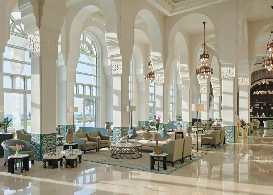 The hotel is located in the Catara Cultural Village in the north of Doha, the capital. It covers an area of about 66000 square meters and is built by WATG. Most of the exterior walls are decorated with domed pavilions common in traditional Indian architecture. The interior, whether it is a carefully finished hollow frame or a fine detail carved from stone, is permeated with a strong Arab style, which is precisely reproduced in accordance with the Mughal architectural tradition.