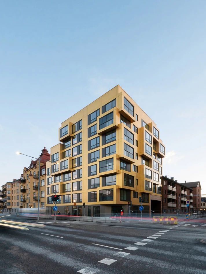 立面覆层由A级防火铝复合材料制成,银色的金属立面与黑色的窗户轮廓和裸露的混凝土半公共通道区域形成了明显的对比。方正的形体,富有规律的凉廊窗台,在横平竖直的简约切割呈现中亦是那么赏心悦目。