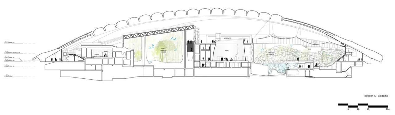 蒙特利尔自然生态博物馆分为热带雨林、圣劳伦斯湾“、洛朗枫树林、拉布拉多海岸、亚南极群岛5个展区。展览以“自然与城市共生”为核心主题,通过展示自然生态与人类社会的和谐关系,引导游客思考人与自然的互动。从宏观到微观,从自然生态的整体性出发,再逐步深入到具体的自然元素和生物多样性。