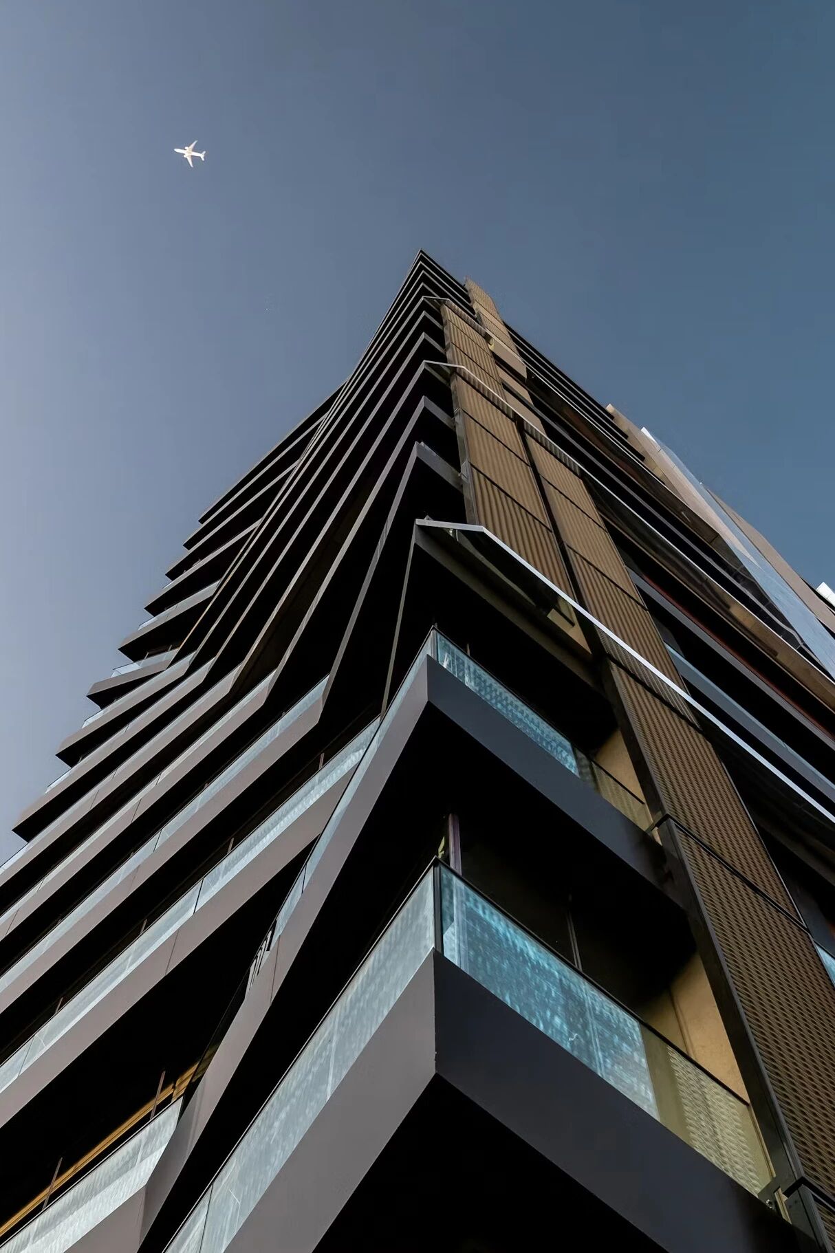 狭窄立面的阳台享有海景,其造型由一条贯穿整个表面的垂直线条的动态变化塑造而成。阳台在与该线条交汇的位置向内退进,这种动态设计在每层的平面布局中均有体现。通过这一设计,每层都获得了独特且别具一格的平面方案,同时阳台空间并不局促,具备充足的使用范围。