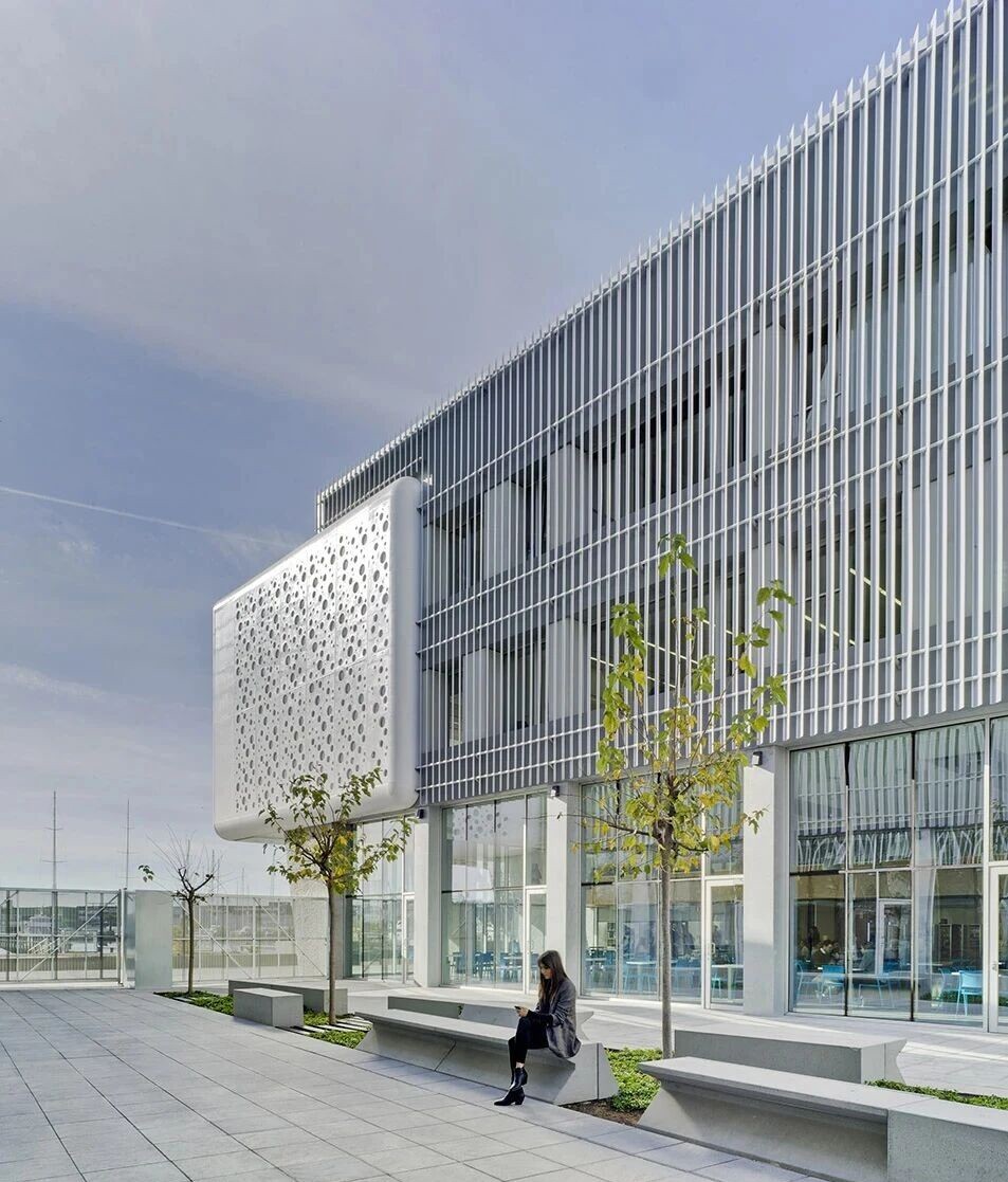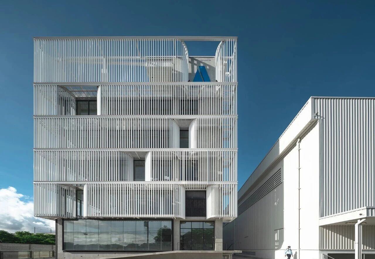 它并非单一形态的产物,而是根据材质、造型、功能的不同,衍生出多种分类,适配不同建筑风格与使用场景。格栅之所以能成为建筑外立面的”常客”,核心在于其“颜值与实用兼顾”,而非单纯的装饰构件。结合30个案例,格栅的功能覆盖建筑使用全场景,既满足基础需求,又能提升建筑舒适度与安全性,主要分为五大核心功能。