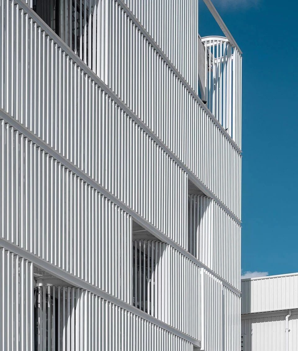 它并非单一形态的产物,而是根据材质、造型、功能的不同,衍生出多种分类,适配不同建筑风格与使用场景。格栅之所以能成为建筑外立面的”常客”,核心在于其“颜值与实用兼顾”,而非单纯的装饰构件。结合30个案例,格栅的功能覆盖建筑使用全场景,既满足基础需求,又能提升建筑舒适度与安全性,主要分为五大核心功能。