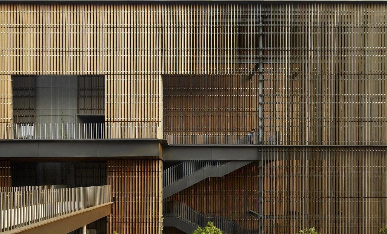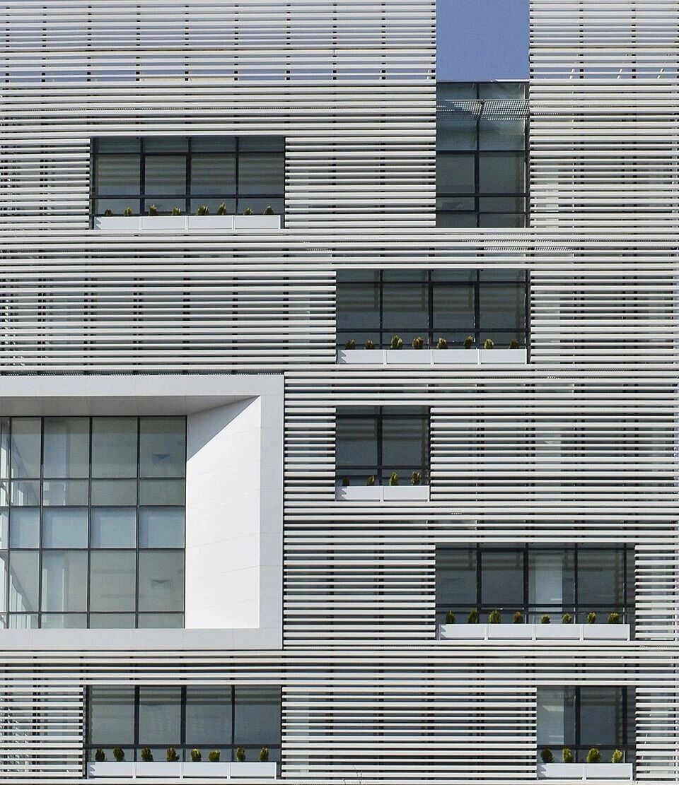 格栅是建筑立面中最具韵律感与功能性的符号之一。从传统建筑的木格栅窗棂,到现代建筑的金属格栅幕墙,它跨越时空,既承载着遮阳、通风、隐私保护的实用需求,也用简洁的线条、丰富的肌理,勾勒出建筑的独特气质。