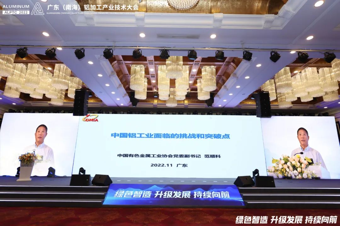 大会开幕式由广东(南海)铝加工产业联盟常务副理事长卢继延主持,中国有色金属加工工业协会、广东省门业协会、广东省涂料行业协会领导分别为大会致辞。中国有色金属工业协会党委副书记、中国有色金属加工工业协会理事长范顺科为大会做《中国铝工业面临的挑战和突破点》主体报告。