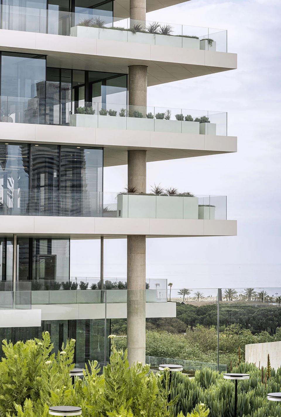 大量充满绿植的露台形成了360度的户外活动空间。办公室的露台空间,可作为社交休闲空间。塔楼的上部分体量呈现出白色的建筑结构,较低的楼层则被第二层表皮所包裹,以呼应周边的工业建筑环境。